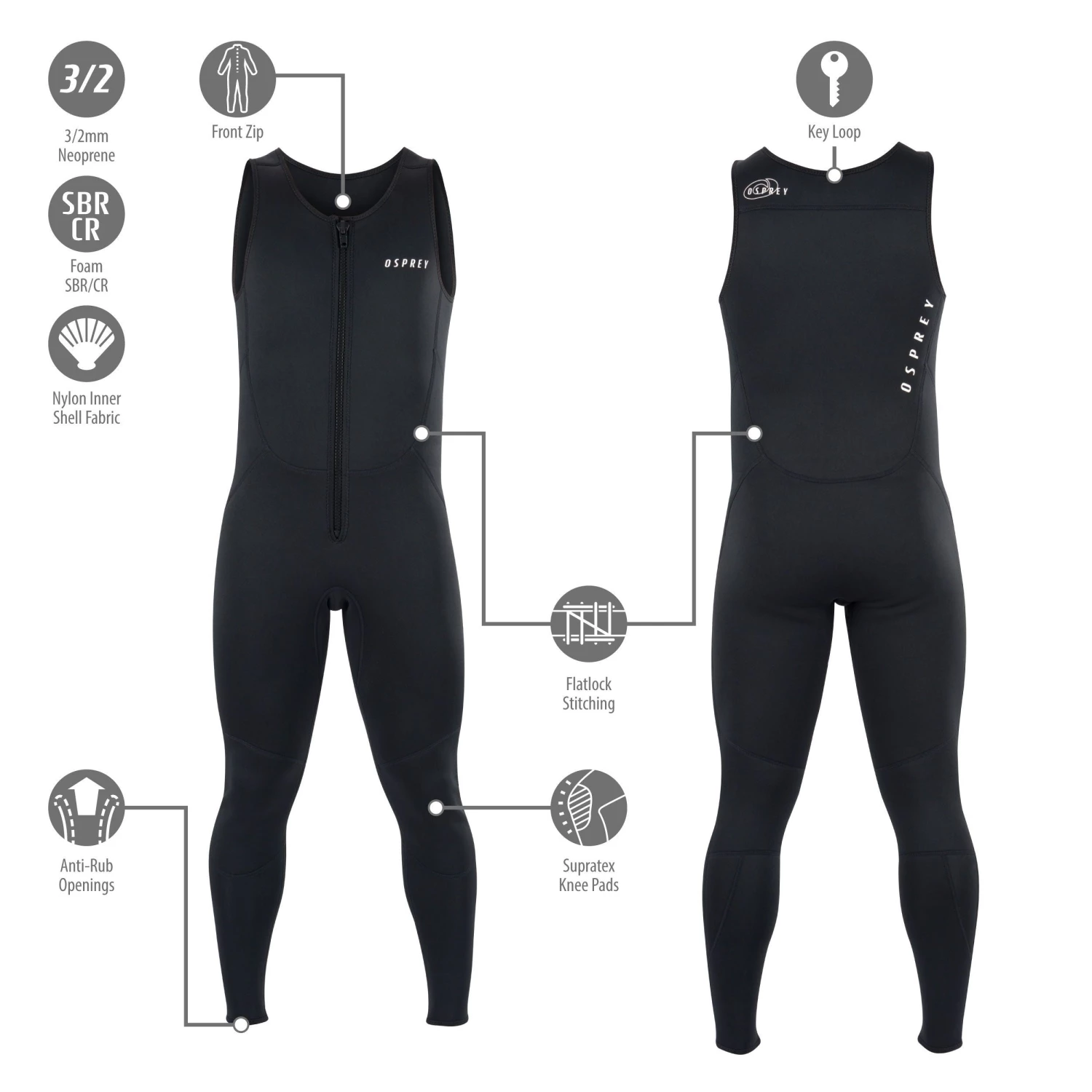 - Osprey’s 3/2mm Sleeveless Sailing Long John provides a high quality option for beginner & intermediate users