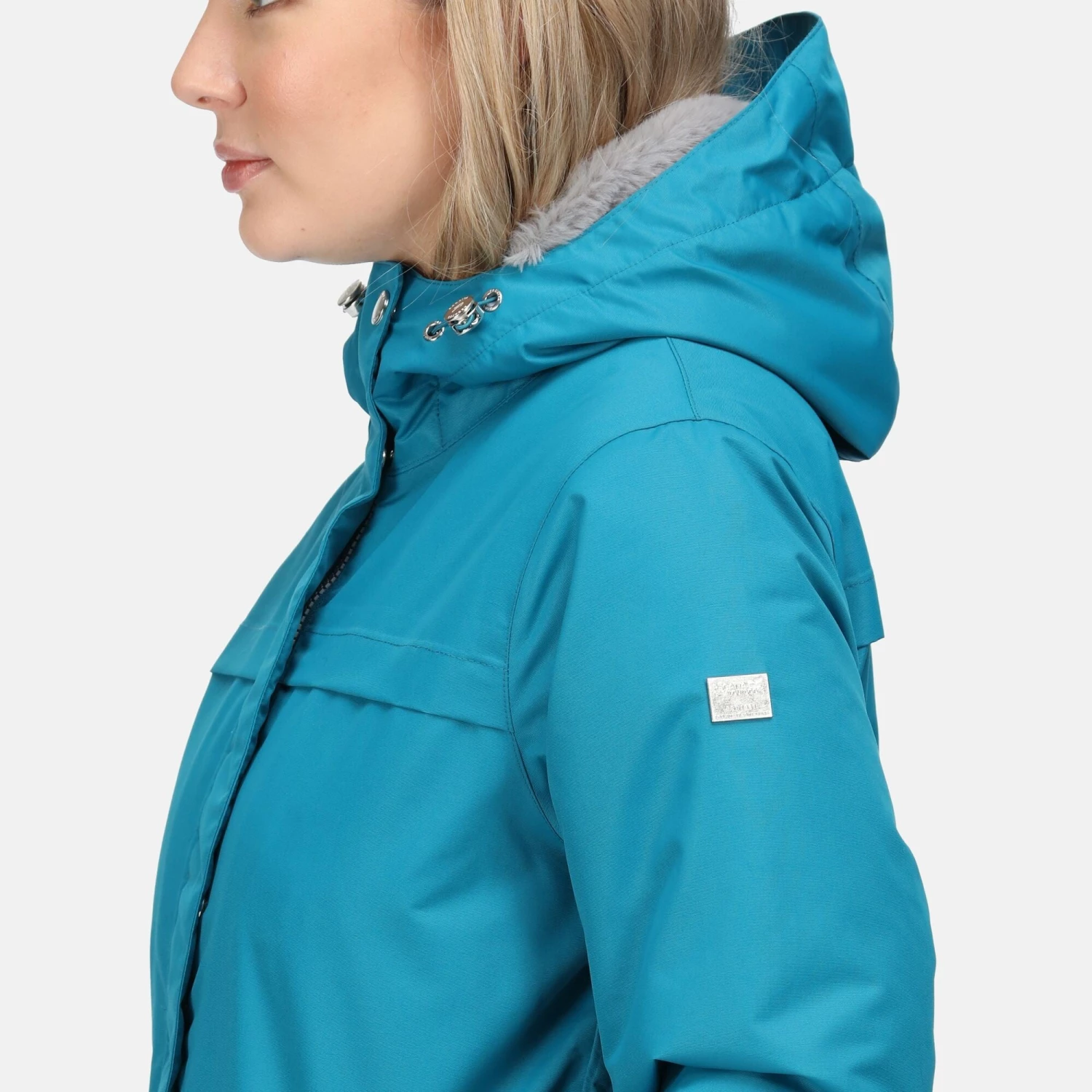 - Faux fur trim to the hood and turn-up cuffs