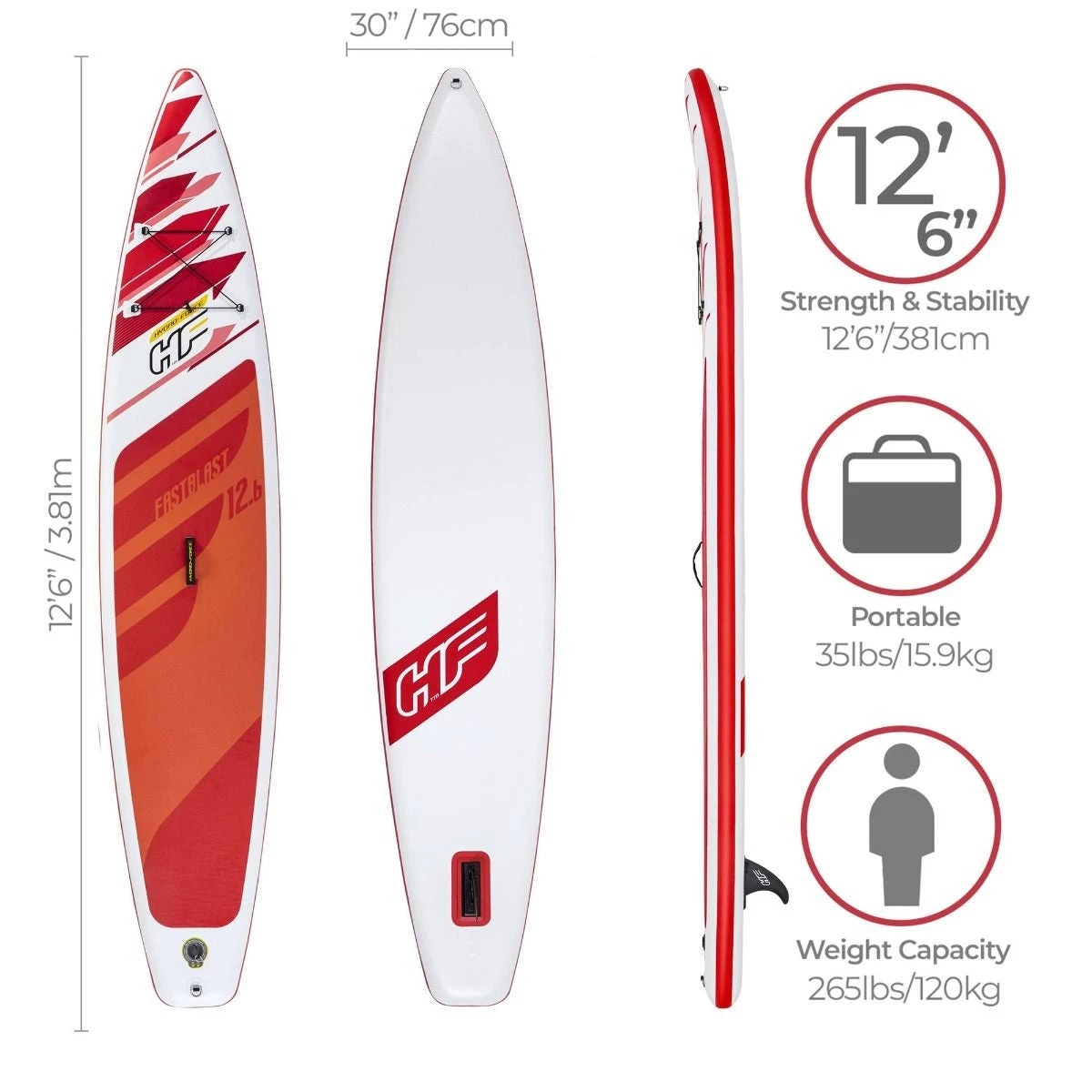 12’6″ X 30″ X 6″ Hydro Force Fastblast SUP
