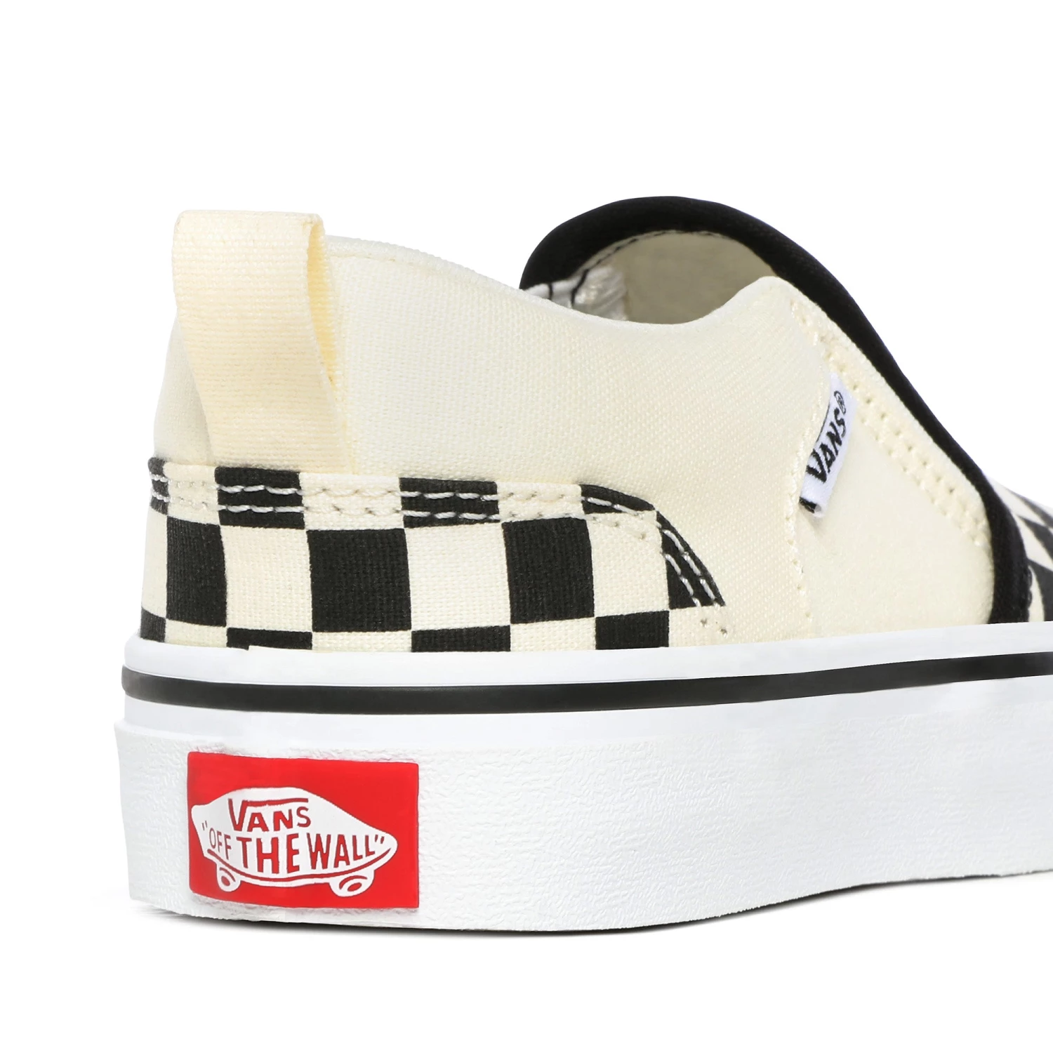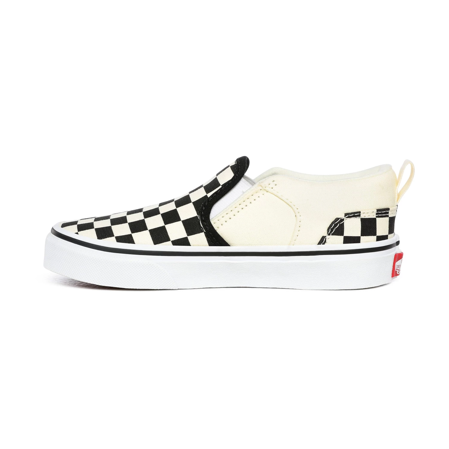 Kids classic Vans slip on skate shoe. Checkerboard design with waffle outsole