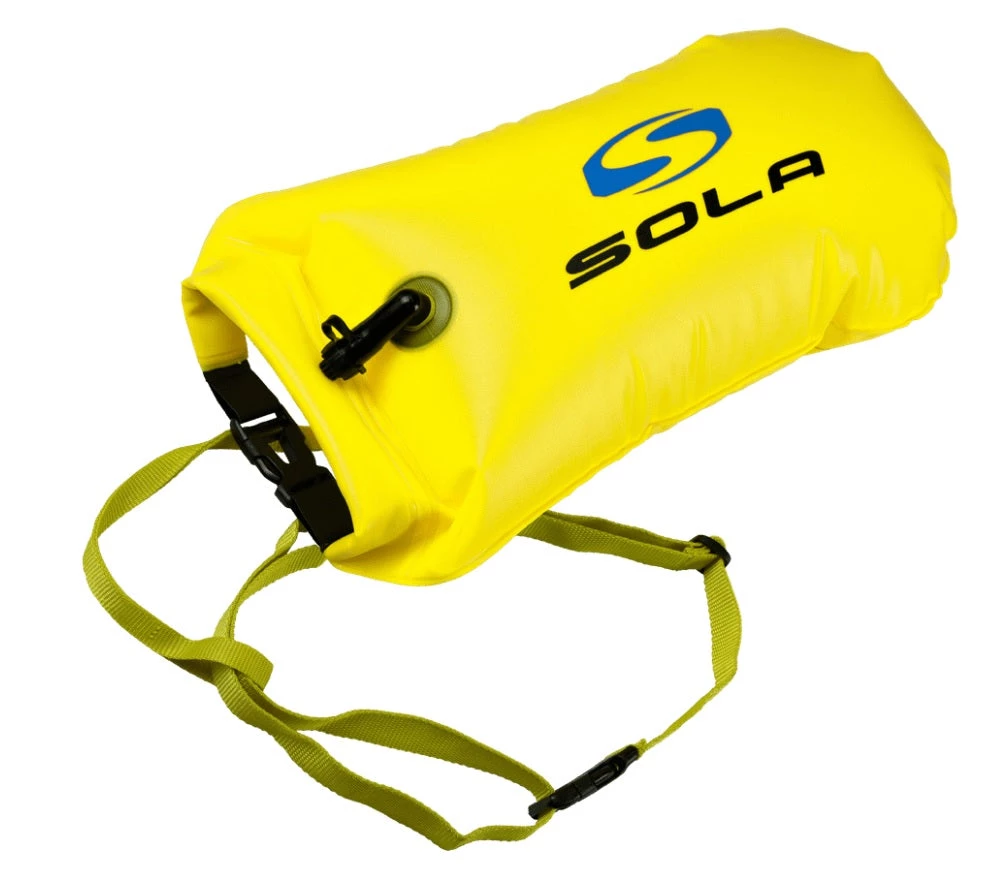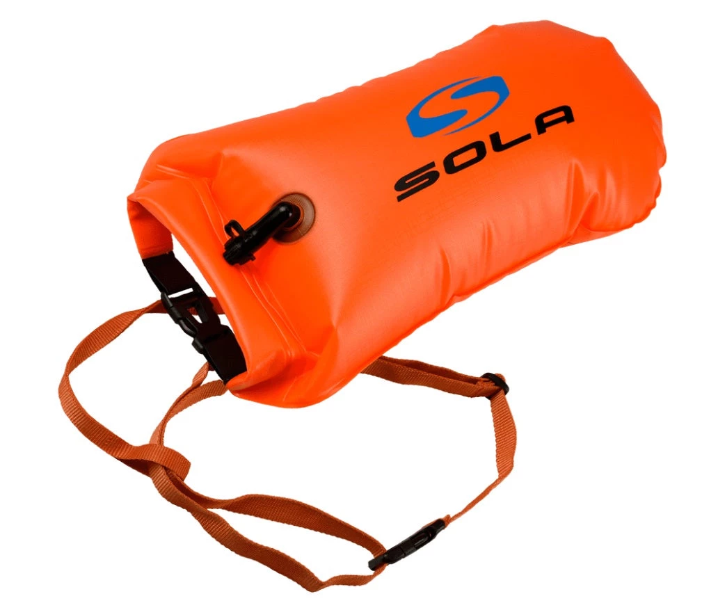 The Sola inflatable dry bags are kitted with a waist belt and tether line – ideal for open water swimming.